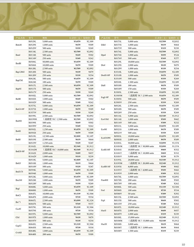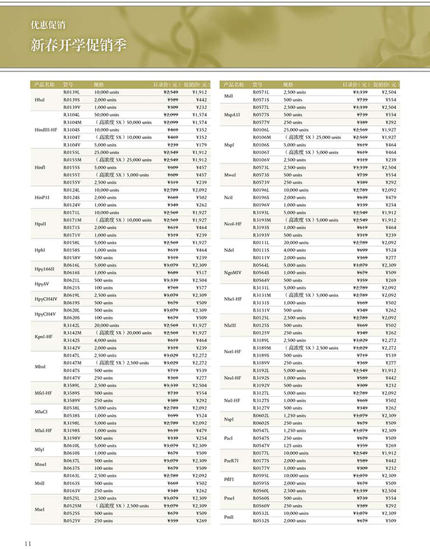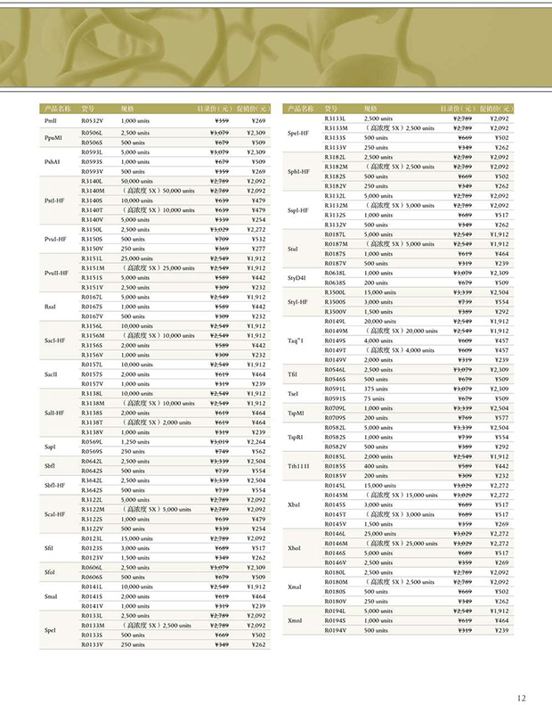 1、140 種常用省時(shí)內(nèi)切酶 7.5 折促銷(xiāo)