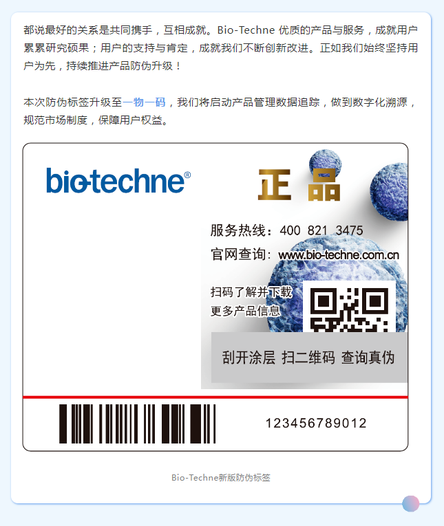 Bio-Techne 防偽標(biāo)簽全面升級 | 一物一碼,全程可溯