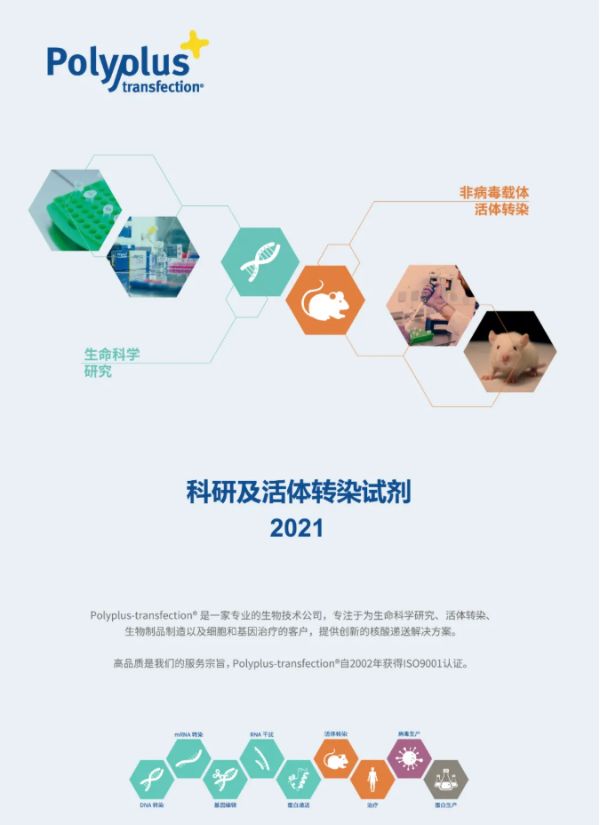 PolyPlus-transfection是一家位于法國的生物技術(shù)公司,目前已經(jīng)通過了ISO9001:2000質(zhì)量體系認證。該公司擁有20年的的轉(zhuǎn)染試劑研發(fā)經(jīng)驗,已經(jīng)開發(fā)了一系列的轉(zhuǎn)染試劑,如:基因的體內(nèi)和體外轉(zhuǎn)染試劑、寡核苷酸轉(zhuǎn)染試劑和siRNA轉(zhuǎn)染試劑等,可以根據(jù)不同的需要獲得穩(wěn)定或瞬時的轉(zhuǎn)染效果。并且提供基因和細胞治療解決方案中關(guān)鍵步驟GMP級別高質(zhì)量的轉(zhuǎn)染試劑。