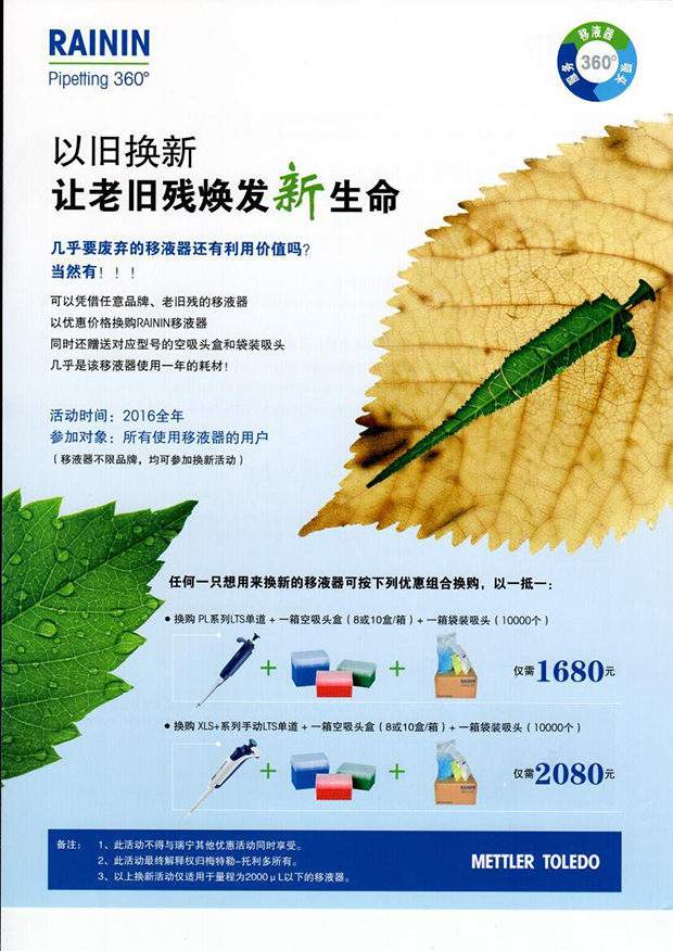 Rainin移液器以舊換新-讓老舊殘煥發(fā)新生命
