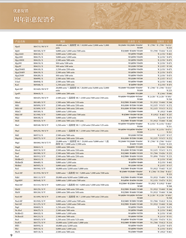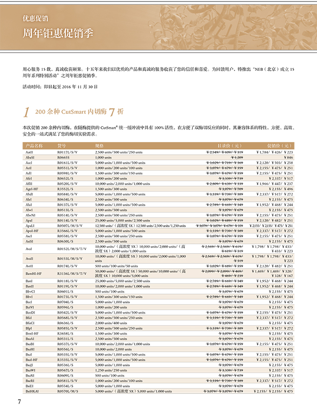 1. 200 余種 CutSmart 內(nèi)切酶 7 折