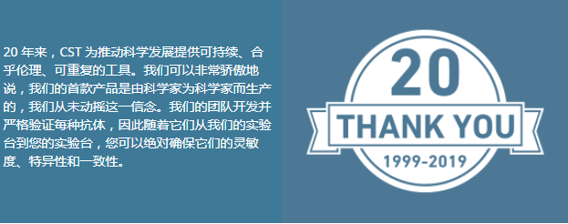 CST是一家由科學(xué)家創(chuàng)立的私營家族公司,致力于提供全球最高品質(zhì)的創(chuàng)新研究和診斷產(chǎn)品,加速生物學(xué)認知以及實現(xiàn)個體化醫(yī)療。其高質(zhì)量的產(chǎn)品和專業(yè)的研發(fā)精神已被全球客戶推崇為“細胞信號研究的金標(biāo)準(zhǔn)”和‘最佳抗體。CST 的可持續(xù)發(fā)展計劃在生物制藥行業(yè)受到普遍認可。