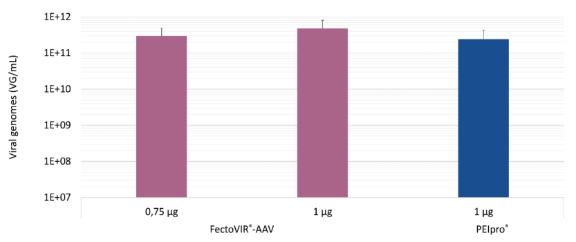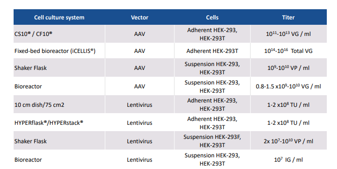 無論基于細(xì)胞培養(yǎng)的系統(tǒng)和生產(chǎn)規(guī)模如何,對(duì)于慢病毒和AAV, PEIpro?和PEIpro?-HQ的有效病毒載體產(chǎn)量分別優(yōu)于107IG/mL和109vg /mL。